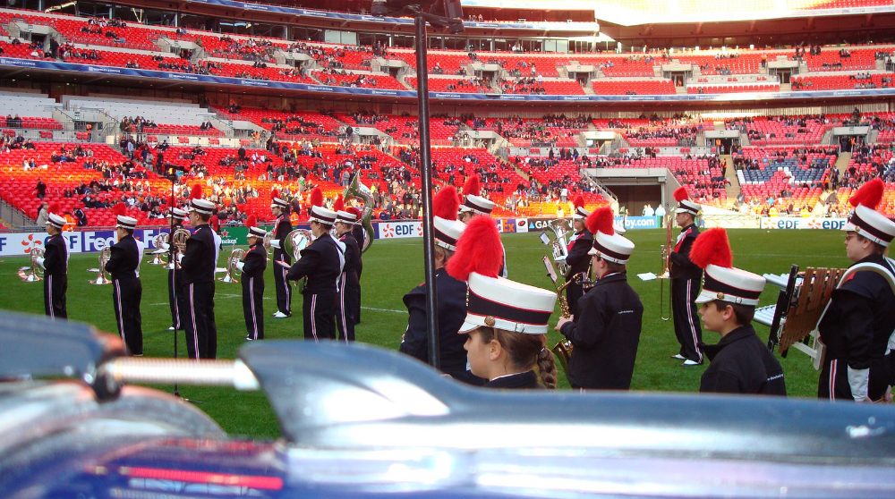 The band kicked up the tempo at Wembley Stadium ahead of the Saracens v Leinster rugby match, followed by an indoor performance conducted by Music Director Tish McDermott.