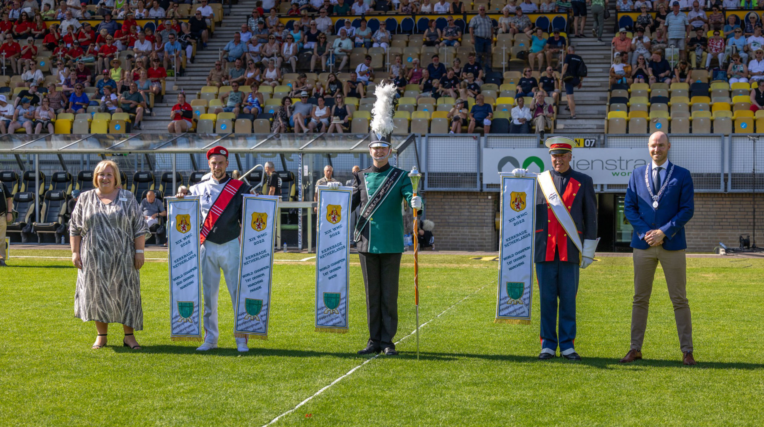 The last competition for Drum Major Ian McDermott, as he retires the mace. With 2 silver medals (just missing out on a Gold by 0.09 of a point) at the World Music Contest, Netherlands.  The Hertfordshire Showband are the top UK band at the contest.